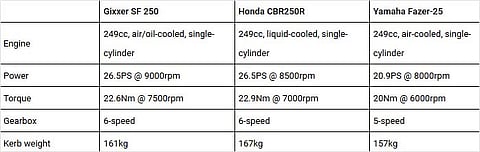 Suzuki is all set to launch the Gixxer SF 250 on 20 May 2019. While the company hasn’t officially revealed any details about the bike, it’s leaked brochure gives us a better picture of where it stands. The fully faired bike will compete against other 250cc bikes like the Honda CBR250R and the Yamaha Fazer 25. But, does it have what it takes to take on its Japanese rivals on paper? We take a look.
