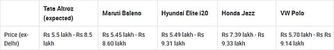 Positioned above the Tiago, the Altroz is expected to be priced from around Rs 5.5 lakh to Rs 8.5 lakh and will rival the likes of the Maruti Suzuki Baleno, Hyundai Elite i20, Honda Jazz and Volkswagen Polo.