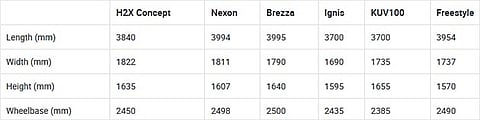 Compare the H2X’s dimensions to those of the tall hatchbacks that mimic SUVs like the Ignis and the KUV100, and it turns out to be significantly larger in all measurements (the KUV100 is taller, though).