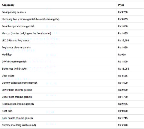 Exterior accessories on offer include roof rails, side step and chrome garnish for fog lamps, door handles and exhaust, among others.