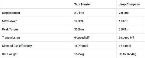 Tata’s Harrier makes a strong case for itself against similarly sized SUVs like the Jeep Compass and Hyundai Tucson because it’s priced aggressively. It has the same engine as the Compass, albeit in a less powerful state of tune, and is heavier too, leading one to believe that the Compass should naturally be the quicker SUV. The Compass is also rated to deliver better mileage than the Harrier. But do the real-world tests reaffirm this or is it a different story altogether? We took both out for a thorough road test and here's what we found.