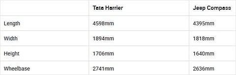 Harrier is bigger in every way than the Compass in terms of exterior dimensions.