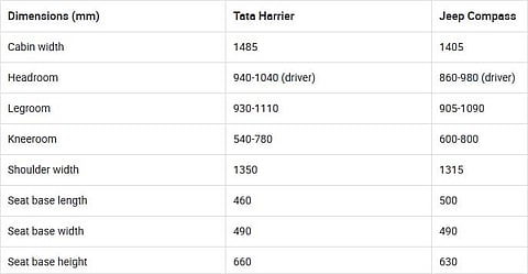 Unsurprisingly, in the case of the Tata Harrier and Jeep Compass, the bigger car has more space on the inside as well. But that won’t discount the fact that the Compass’ seats would be more accommodating for 4 individual passengers.