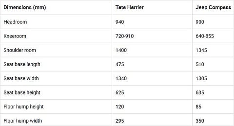 The Compass’ front seats are also more accommodating, with a longer base for better underthigh support while the width of the base is same as the Harrier. However, the Tata’s seat base is higher than the Jeep’s which would give it a more upright seating position.
