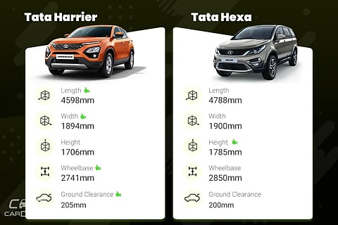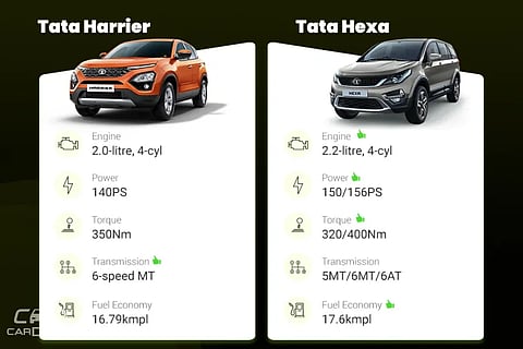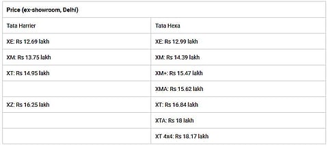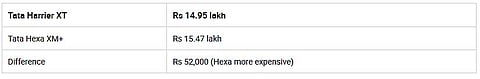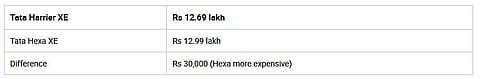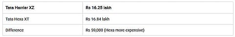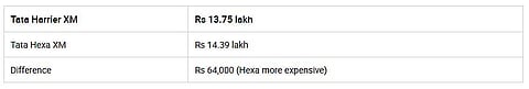 The Tata Harrier’s competitive pricing (ranging between Rs 12.69 lakh to Rs 16.25 lakh, ex-showroom Delhi) means it competes with Tata’s 7-seater SUV, the Hexa, on the price chart. While the Hexa can seat more than 5 people, like the Mahindra XUV500, it also comes with 4WD capability in the top variant, which the Harrier doesn’t get. However, the 4WD Hexa is around Rs 2 lakh more expensive than the top-spec Harrier, so we’ll focus just on the Hexa’s diesel-manual variants for this comparison.