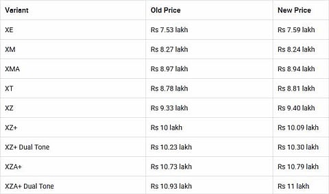 The XZ and XZ+ variants have also received some exclusive additions. Tata has added a piano black door trim and 12V power outlet for the rear seats on these variants.