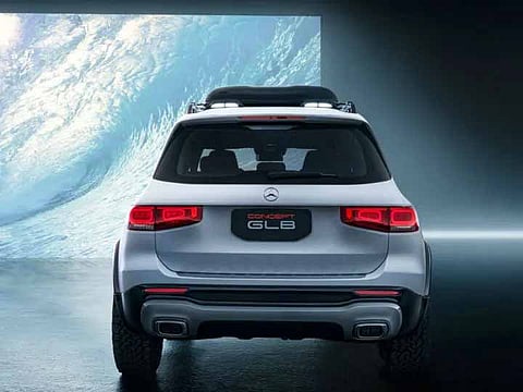 The SUV follows a different design path compared to what we have seen in the GLA and GLC. Gone are the swooping lines and low stance, the SUV now looks similar to the much bigger GLS. The boxy front now has a huge twin-slat grille with the three-pointed star bang in the centre. Flanking the grille are multi-beam LED headlamps with eyebrow and a lower DRL element. Below that are a set of traditional fog lamps and funky looking air dams. In profile, the SUV looks muscular with squared wheel arches, tall stance, and 17-inch off-road tyres. All these features hint towards a capable off-roader. The concept also carries a pair of auxiliary lamps on the roof with a black roof box, door handles and ORVMs. The rear section also follows a boxy design language with split LED taillamps and an aluminum diffuser.