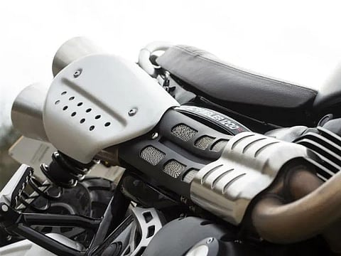 The upswept scrambler-style exhaust has a deep, bassy rumble, but can get quite hot at slow speeds and at standstill. It also has the potential to singe your right calf when you decide to grip the bike, standing up on the pegs.