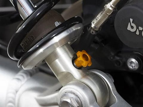 Suspension setup includes fully adjustable Showa upside-down forks and twin Ohlins piggyback shock absorbers. Both sides get a massive 200mm of wheel travel. Under stock setting, the front suspension is set on the firmer side causing the front end to bounce around. While the rear Ohlins RSUs too were set on the firmer side, it did not upset the riding dynamics. However, you can tweak all this to your liking, thanks to full adjustability at both ends.