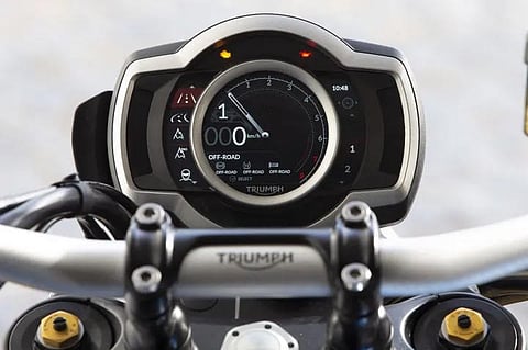 Modern bits come in the form of Triumph’s second-gen colour TFT screen. It has two themes and relays a whole lot of information on the go. Triumph has also thrown Bluetooth connectivity with turn-by-turn navigation into the mix.