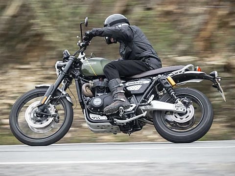 The motor's ‘Sport’ mode gives you the instant boost that you need to enjoy your one-wheel shenanigans. But there is so much more to it than that. There is just so much enjoyment with a simple twist of the wrist that you forget you are riding a parallel-twin scrambler and not an exotic supermoto. This High Power motor gets its own dedicated tune. Peak figures of 90PS and 110Nm are more than enough to get the bike to triple-digit speeds or cruise calmly at 3000-4000rpm in top gear, clocking more than 100kmph.