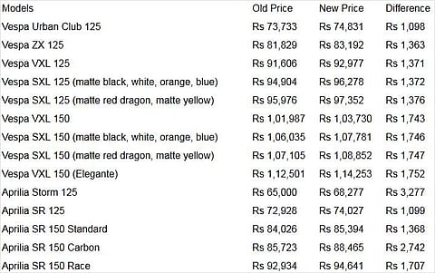 Vespa and Aprilia have increased the prices of their entire model lineup. While Vespa models are now around Rs 1,098 to Rs 1,798 more expensive than before, Aprilia scooters are now Rs 1,100 to Rs 3,277 dearer compared to the older price. This is not the first time that Piaggio has revised the prices of its two-wheelers. Here’s how much you’ll need to shell out from now: