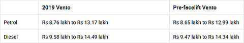 Facelifted Vento gets aesthetic refresh in the form of new front grille, side skirts and updated taillamps.