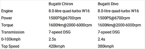 Bugatti, it seems, was not entirely pleased with the Chiron despite building a car with enough power to move the earth out of its orbit and tear a hole in the space-time continuum. It seems the engineers were hellbent on upsetting Newton’s spirit some more. The answer was really simple. Take the Chiron and make it into a racetrack-carving rocket ship. And hence, the Divo was born. Showcased at the 2018 Pebble Beach Concours d'Elegance, the Divo is the ultimate version of one of the fastest cars in the world. And what do you do when you have two very different versions of a Bugatti? You pit them against each other. On paper, at least.