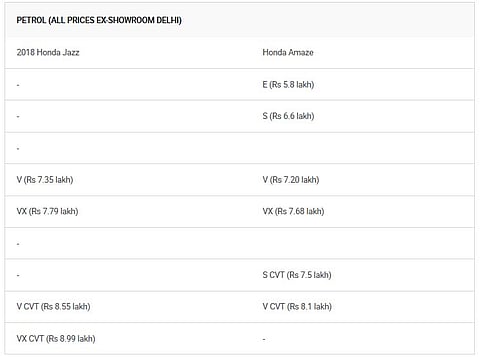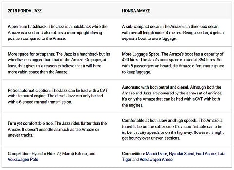 Priced between Rs 7.35 lakh and Rs 9.29 lakh, the Jazz not only takes on the likes of the Maruti Baleno and the Hyundai Elite i20, it also competes with similarly priced sub-4m sedans in the country. One such sedan is the Jazz’s stablemate, the Amaze, which recently became the first Honda to breach the 10,000 monthly sales mark.