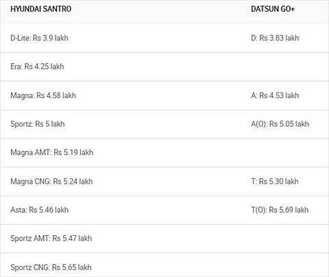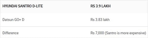 Launched at an introductory price ranging from Rs 3.9 lakh to Rs 5.65 lakh (ex-showroom*, pan-India), the Santro marks Hyundai’s return in the compact hatchback segment where it rivals the likes of the Maruti Suzuki WagonR, Maruti Suzuki Celerio, Tata Tiago and Datsun GO. Despite offering some segment-first features, the Santro still misses out on some features offered on similarly or lower priced rivals like the recently facelifted GO. In fact, its bigger version, the GO+, also got the same updates with the facelift and is also closely priced, ranging from Rs 3.83 lakh to Rs 5.69 lakh (ex-showroom*, Delhi). While serving very different purposes, the Santro and the GO+ are within the same price segment. And hence, we’ve pitted the budget hatchback against the budget MPV to see just how well they compare.