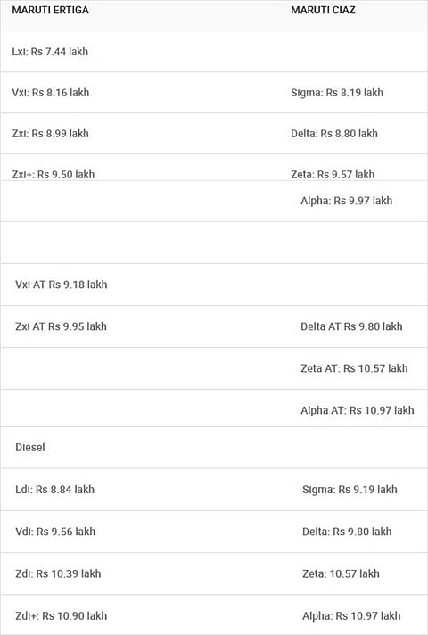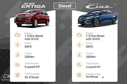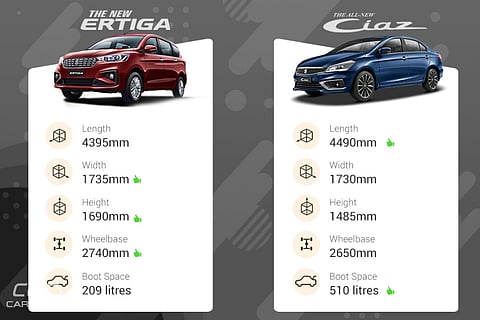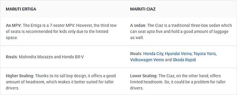 Maruti recently launched the much-awaited second-gen Ertiga in India where it goes up against other 7-seater MPVs like the Mahindra Marazzo and the Honda BR-V. But, in terms of pricing, it also competes with its stablemates, the Ciaz, Vitara Brezza and the S-Cross. For starters, let’s pit it against the Ciaz on paper, to find out which Maruti car suits your requirements better.