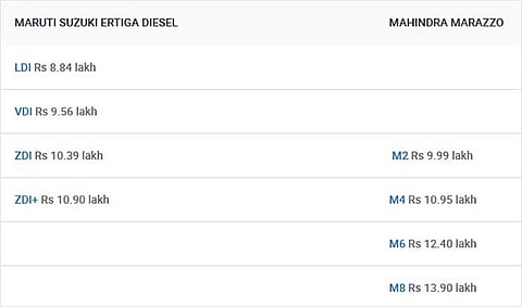 Maruti Ertiga ZDI vs Mahindra Marazzo M2