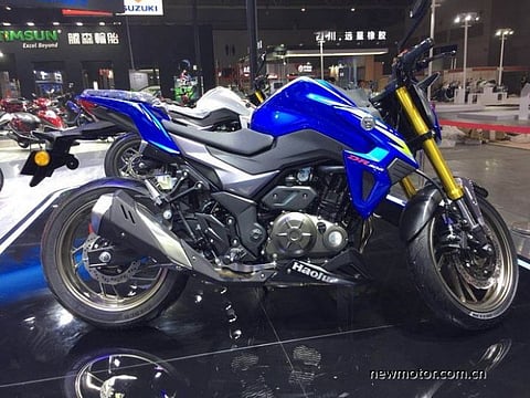 Haojue, Suzuki’s local partner in China, has unveiled a mid-capacity street naked, the DR300, at this year’s Chongqing Mobo Fair. The motorcycle’s patent images were leaked in April this year. The DR300 is reportedly based on the Suzuki GW250 (remember the Suzuki Inazuma?) with a rebored engine.