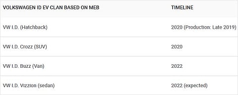MEB-based electric cars will have multiple battery capacity options. The maximum an MEB-based car would travel on a single charge would be over 550km under the latest WLTP (Worldwide harmonized Light vehicles Test Procedure) test cycle. Electric cars based on the MEB platform will be rear-wheel driven as standard and will have all-wheel drive capability as well (with motors placed on both the axles). As far as fast charging options are concerned, the I.D., in particular, will support upto 125kW DC fast charging that would juice up its batteries to 80 per cent in around 30 minutes.
