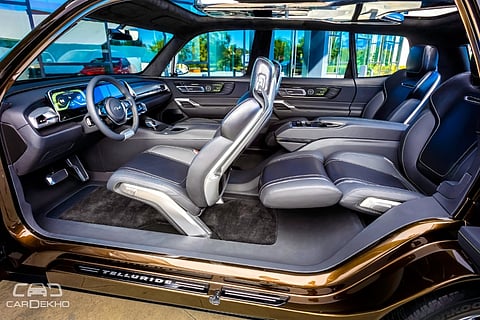 The Kia Telluride concept is a hybrid vehicle powered by a 3.5-litre V6 engine with an overall output of around 400PS. There should be conventional engines on offer as well on the Palisade, but expect it to be offered with electrified powertrains for limited markets. The Kia Telluride concept, which features an AWD setup, rides on 22-inch wheels. It has a wheelbase of 3081mm, which is over 300mm longer than that of the UK-spec new-gen Santa Fe. The Telluride is 2009mm wide, making it 119mm wider than the UK-spec Santa Fe.