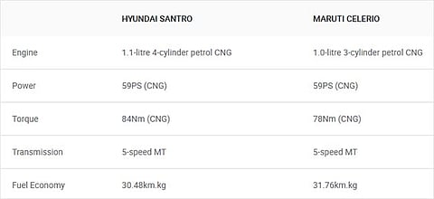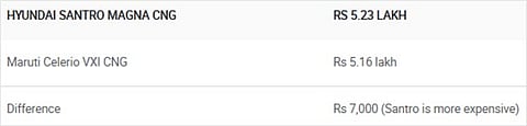 Hyundai Santro Magna CNG vs Maruti Celerio VXI CNG
