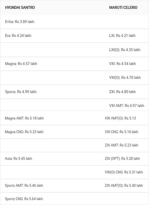 Hyundai Santro vs Maruti Suzuki Celerio: Variants Comparison