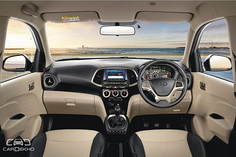 What Santro offers over Celerio: ABS with EBD, tachometer, gear shift indicator, 2.5-inch MID, rear AC vents, rear parcel tray, fire extinguisher, ticket holder
