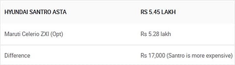 Hyundai Santro Asta vs Maruti Celerio ZXI (Opt)