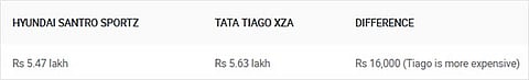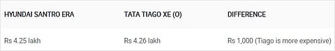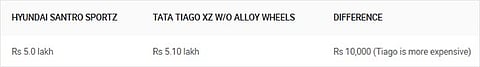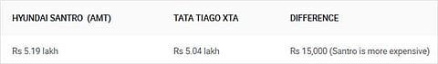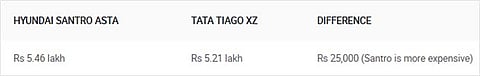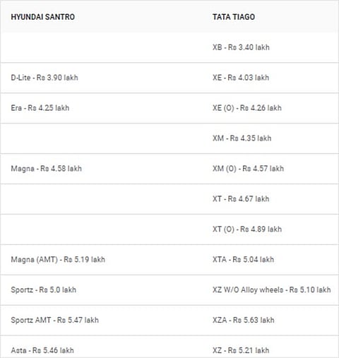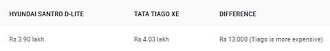Hyundai has launched the Santro, in a new avatar, after a three-year hiatus in India. The hatchback is priced in the Rs 3.90 lakh-Rs 5.46 lakh (ex-showroom India) price bracket. This particular price range has a lot of other options, and one of them is the popular Tata Tiago. To make things simpler, we pit select variants of the Hyundai Santro against those of the Tata Tiago to find out which offers more bang for your buck.