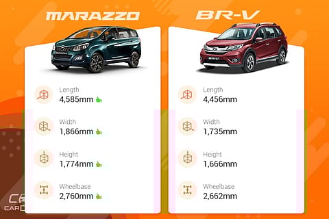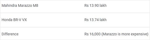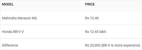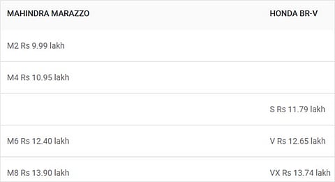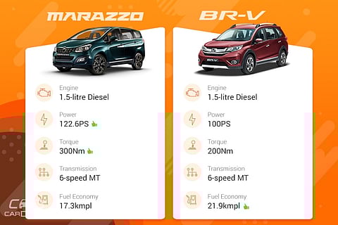Mahindra launched the Marazzo MPV on 3 September, 2018 at an introductory starting price of Rs 10 lakh (ex-showroom Delhi). Some of the Marazzo’s variants clash with those of the diesel BR-V’s on the price chart. Since the BR-V can also seat 7, there is bound to be confusion when choosing one between the two. So let’s check out which one suits your needs best by comparing their variants that are priced close to each other. But before we delve into more details on their features, let’s take a look at their specifications and prices.