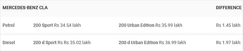 Mercedes-Benz has introduced a special edition of the CLA sedan, the Urban Edition, for the upcoming festive season. Based on the top-spec Sport variant of both petrol (2.0-litre, 184PS/300Nm) and diesel (2.1-litre 136PS/300Nm) versions of the CLA, the Urban Edition packs visual and feature upgrades, while mechanically it remains unaltered.