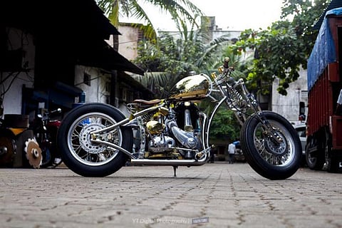 ‘ALBRASSCO’ features a fuel tank and oil tank hand fabricated from brass and then plated in copper, giving it a steampunk vibe. The aluminium handlebars come wrapped with leather, while the seat frame is made from stainless steel. Leather finds a place on the seats, and so does an engraved logo for a premium touch. The wheel rims, on the other hand, are made out of aluminium, while the spokes are stainless steel. Other parts made out of stainless steel include the girder front fork spring and the rear monoshock. However, they get copper plating for a distinct look. This clean custom creation commands cleaner electrics, and to achieve this, the wires have been concealed by routing them through the chassis. To top things off, all the components have been buffed for a shiny finish.