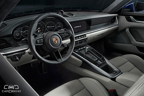 Most of the changes have been reserved for the cabin where the interior. The instrument cluster still features a manual rev counter in the centre and digital displays on either side. The central console is now devoid of many buttons as the controls have been shifted to the 10.9-inch centre screen of the Porsche Communication Management (PCM) system. Underneath the screen lies a switch unit with five buttons for functions like traction control and Porsche Dynamic Chassis Control. If you don’t opt for the Sports Chrono package to get the steering mounted dial to change drive modes, you’ll have to use the touchscreen to toggle through them. Even the option to put the exhaust into loud mode now resides on the touchscreen interface. The gearstick for the PDK has changes as well and now resembles more of an elongated toggle than a gear selector. However, variants with the 7-speed manual gearbox option are expected to follow soon.
