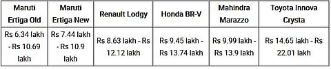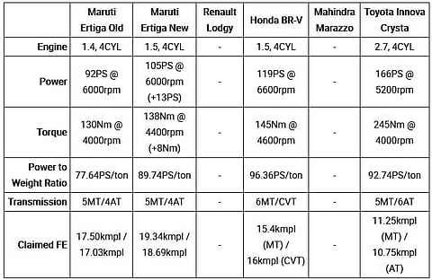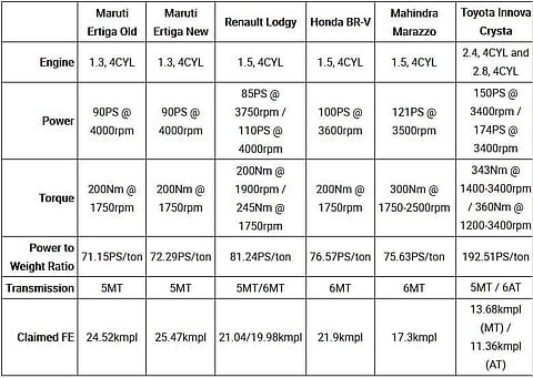 The all-new, second-generation Maruti Suzuki Ertiga is here. It's sharper looking on the outside, shedding the please-all design of its predecessor. Its interior is bigger, gets new-age features and most importantly can seat seven adults more comfortably than before. But how does it compare to its competition on paper? We pit it against the Renault Lodgy, Honda BR-V, Mahindra Marazzo, Toyota Innova Crysta and its own old self to see if it is really worth the competitive asking price.