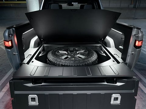 The R1T has an innovative ‘gear tunnel’ behind the cabin and in front of the rear wheels which can hold irregularly sized luggage sideways.