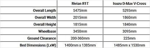 A highlight of the design is the HUGE LED slab at the front which doubles up as a charge indicator! Here’s how the R1T compares to the Isuzu D-Max V-Cross