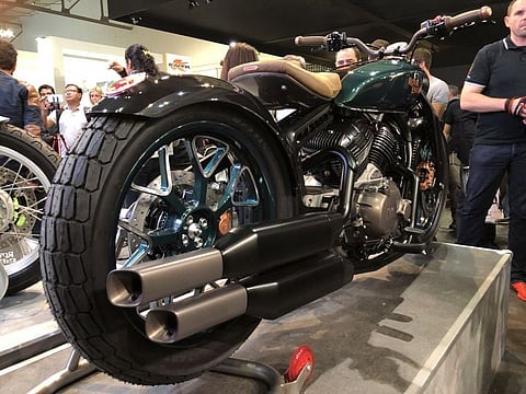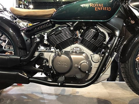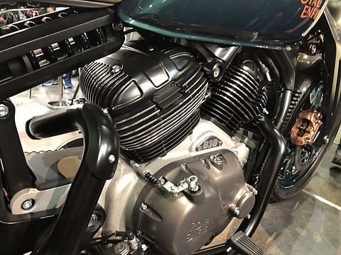 The concept features an 838cc, V-Twin, air-cooled motor. Sadly, Royal Enfield did not disclose the motor’s power or torque figures. The motorcycle is built around a split-cradle frame that uses the engine as a stressed member. Suspension duties here are handled by girder-type forks at the front and a monoshock placed beneath the seat at the rear. The cruiser employs twin disc brakes at the front with Bybre radial callipers and a single disc at the rear, and rides on alloy wheels shod with Maxxis slicks.