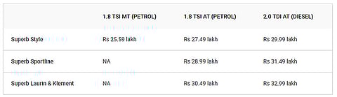 Skoda has launched a sporty-looking variant of its flagship sedan, the Superb, in India. Dubbed the Superb Sportline, the new variant gets a bunch of cosmetic updates and additional features while remaining mechanically unchanged. It is available in both petrol and diesel engine options, which are priced at Rs 28.99 lakh and Rs 31.49 lakh (ex-showroom India), respectively. At this price, the Superb Sportline slots right in between the base-spec Style variant and top-spec L&K (Laurin & Klement) variant.