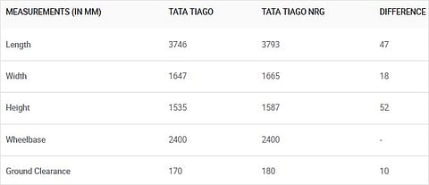 Tata Motors has launched a buffed up crossover version of the Tiago at Rs 5.50 lakh for the petrol and Rs 6.32 lakh for the diesel model.Christened the Tiago NRG, it commands a premium of Rs 28,000over the standard top-spec XZ variant which retails for Rs 5.22 lakh (petrol) and Rs 6.04 lakh (diesel) (all prices ex-showroom Delhi). Tata calls it the “Urban Toughroader”, but we'll reserve our verdict on that until we get our hands on one.