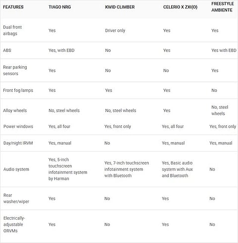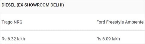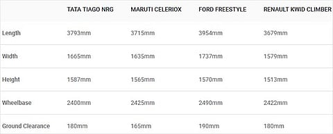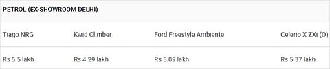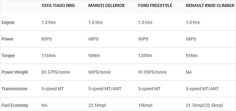 Tata has launched the Tiago NRG, a buffed up version of the Tiago, in India today. It is available in a single variant only which is priced at Rs 5.50 lakh and Rs 6.32 lakh (ex-showroom Delhi) for petrol and diesel models, respectively. At this price, the Tiago NRG not only takes on the Celerio X, its natural rival, but also competes with Renault Kwid Climber and base variant of the Ford Freestyle. Let’s compare the prices first:
