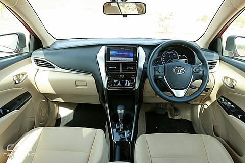 With the falling demand, Toyota has started offering benefits on its C-segment sedan, the Yaris. Customers stand a chance to save a grand total of around Rs 1 lakh depending on the schemes availed. Benefits include exchange offers and accessories under the brand’s ‘Gold Rush’ scheme. Here’s what you get:
