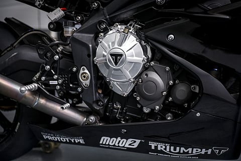 Triumph used the Daytona 675’s motor as a base for the new 765cc engine, which was further optimised to be as powerful as it could be for road-use on the Triple RS. It makes 121PS thanks to several performance parts kitted out in the engine. However, for Moto2, Triumph has added more oomph to pump out 138 horses from the same motor. That is 17 more than the RS and 8 more than the Moto2-spec Honda engine.