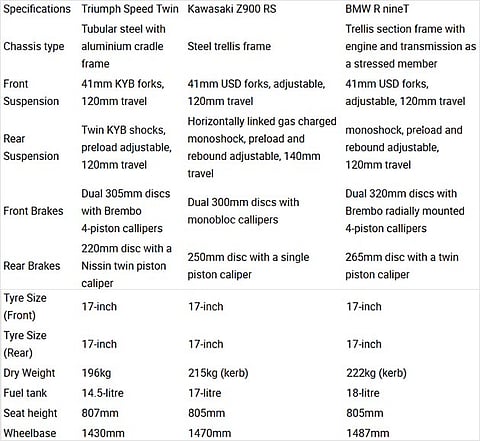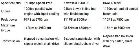 Triumph revealed the Speed Twin, its latest retro-modern roadster that draws inspiration from the 1938 Speed Twin recently. Like its namesake, the Speed Twin promises to blend agility with a retro modern design by borrowing parts from the sportier Thruxton cafe racer. We expect this bike to debut in India next year and when it does, it will face heat from Kawasaki’s neo-retro Z900 RS and BMW’s gorgeous R NineT roadster. We compare the three to see which one comes out on top. On paper that is.