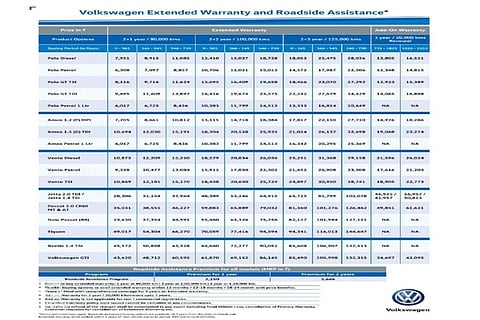 Volkswagen has introduced a new add-on warranty across its entire model range in India. The add-on warranty covers the vehicle post its standard (2 year/unlimited km) or extended warranty (2+2 years or 2+3 years, whichever applicable) but only upto 7 years. The add-on warranty, if bought, will be valid for the duration of one year only and will have to be renewed to continue coverage.