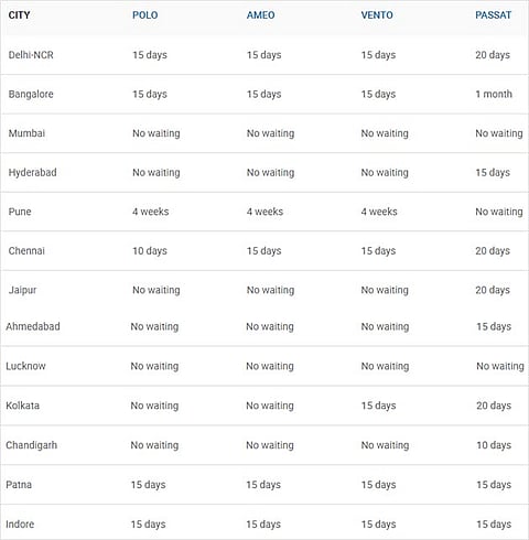 Planning to get a new Volkswagen car this Navratri? We have good news. Given you book it now, Volkswagen should be able to deliver any of its cars by Navratri. In fact, since the waiting period on most VW cars is less than 20 days in all cities apart from Pune (surprising, since VW manufactures its cars in Pune!), you can even wait for month-end deals, that VW might roll out, before signing the dotted line.