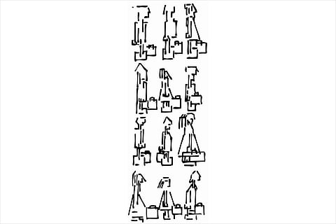 In a labor camp, somewhere in the Persian Gulf, a laborer swallowed his passport and turned into a passport. His roommate swallowed a suitcase and turned into a little suitcase. When the third roommate, privy and vital to the master plan, ran away the next morning with the new suitcase and passport, he made it past the guard on night duty, onto the morning bus to the airport, past the bored ticket agent at check-in, past security, past pat down and a rummage through his suitcase, past using the bathroom once, twice, thrice, to pee, to shit, to sit, past Duty Free, where he stared at chocolates and booze and magazines and currencies, past families eating fast food in track suits or designer wear, past men and women sleeping on the floor, past his past, past his present, past the gold in the souks, the cranes in the sky, petrol in the air, dreams in his head, past God and the devil, the smell of mess halls, past humidity and hot air, past it all, until he found an empty chair in the departures lounge, where he sat and held his future in his hands. It was then the little suitcase sprouted legs and ears, and the passport developed palms and long fingers as well as a nose and a mustache, and soon after the boarding call, at the very moment the stewardess checked his documents, the third laborer was asked to wait.