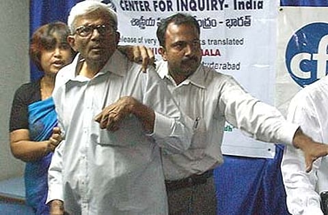 Without further warning, they began throwing books, bouquets, chairs, and whatever they could lay their hands on at her. Some persons in the mob almost got hold of her but Narisetti Innaiah, rationalist and chairman of the Center for Inquiry, who was her host, shielded her. He was injured in his face. A couple of journalists who went to their rescue also sustained injuries in the scuffle.