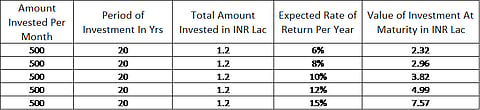 Check out the table below to understand how your investments can grow at different rate of returns.