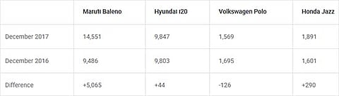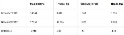 Since the time the Maruti Suzuki Baleno nameplate was reincarnated, there seem to be no stopping this premium hatch and it continues to enjoy its supremacy in the segment. Although the entire premium hatchback segment registered sluggish sales in December 2017 (which is expected as most buyers want a car model of a new year for better resale value), the Volkswagen Polo registered positive sales figures when compared month-on-month.